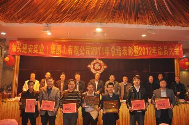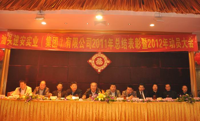 会议由刘伟光副总经理主持。集团公司总经理黄少华同志作我司2011年工作总结和2012年工作计划报告,回顾总结我司去年各方面的情况,包括取得的成绩和存在问题,并就今年的发展态势作了具体安排。会议还表彰一批在去年工作中取得突出成绩的先进单位和个人,李忠斌副总经理宣读《关于表彰二O一一年度先进单位和先进个人的决定》(汕建实业[2012]8号),现场还对获奖单位进行了颁奖。先进单位和先进项目部代表发言。最后,董事长黄世豪先生作重要讲话,以“安”、“稳”、“增”、“进”四个字高度概括我司去年的情况;要求大家按既定的目标,坚决不动摇,回应省委省政府转型升级精神,打造一支敢于负责任的团队,脚踏实地,稳定发展,树立实业人的风范,再创佳绩。