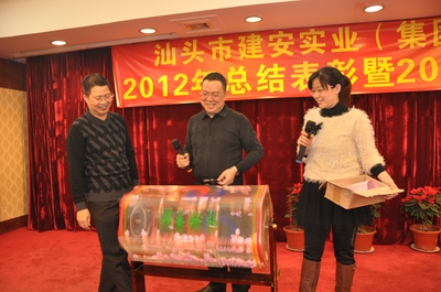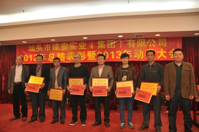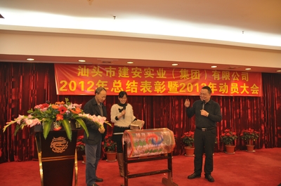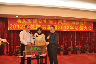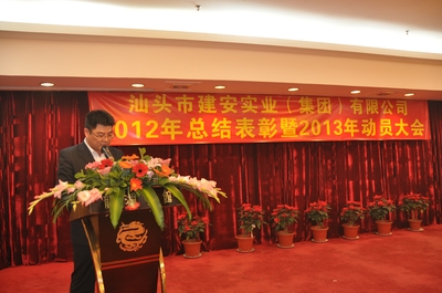 会议由刘伟光副总经理主持。集团公司总经理黄少华同志作我司2012年工作总结和2013年工作计划报告,总结我司去年各方面的情况,包括取得的成绩和存在问题,并就今年的发展态势作了具体安排。会议还表彰一批在去年工作中取得突出成绩的先进单位和个人,李忠斌副总经理宣读《关于表彰二O一二年度先进单位和先进个人的决定》(汕建实业[2013]7号),还对获奖单位进行现场颁奖。先进单位和先进项目部代表发言。最后,董事长黄世豪先生发表重要讲话,就如何办好企业,谈了几点意见:1、加强企业的文化建设;2、以人为本;3、不断进行业务创新和组织创新;4、要加强对公司经营责任的落实。