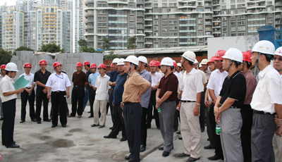 为加强公司所属各项目部之间的施工技术交流,提高各自的施工管理水平,10月7日下午,我司组织各项目部有关人员到海岸大厦施工现场进行质量安全情况的参观,集团公司各部门的领导和监理公司代表也应邀莅临施工现场参观指导,共五十余人。
