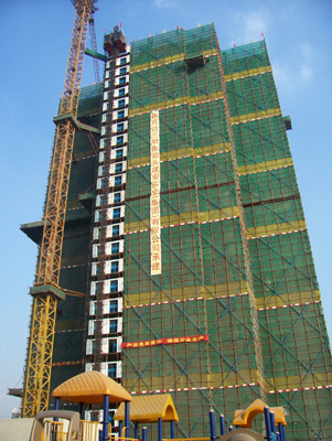 东莞市铭可达商住中心三期工程“聚景苑”由东莞市铭可达商住中心开发有限公司投资兴建,勘察单位为中国有色金属长沙勘察设计研究院,设计单位为陕西省城乡规划市政建筑设计研究院,监理单位为广州市百业建设顾问有限公司,施工单位为汕头市建安实业(集团)有限公司。在各有关单位的大力支持配合下,本工程的创优工作得以顺利进行。以下为铭可达商住中心创省“安全生产、文明施工优良样板”工地的有关工作情况。